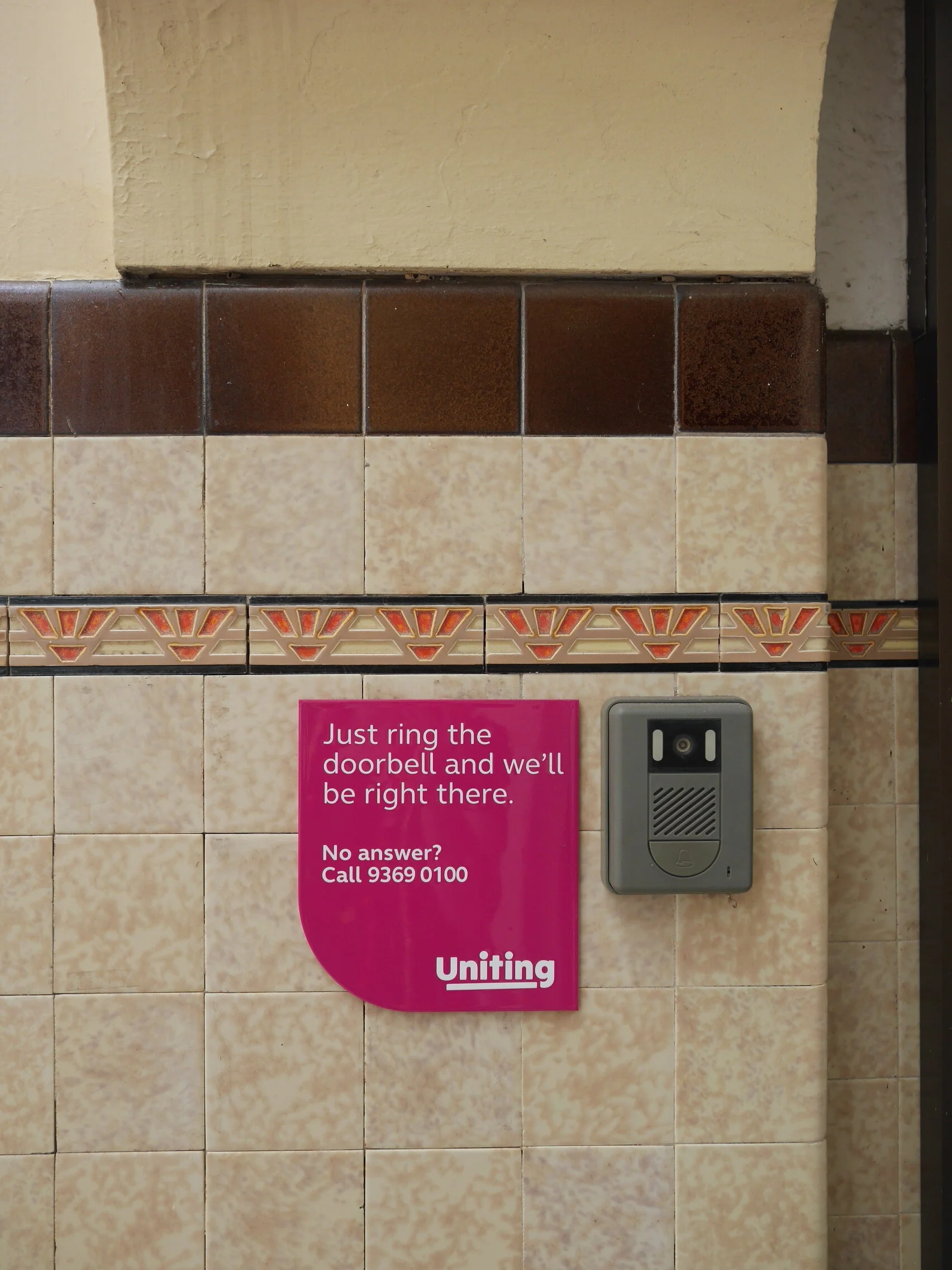 Aligned with the brand work by RE, MAAT was engaged to design a signage system that would create a visible presence and celebrate Uniting brand values.